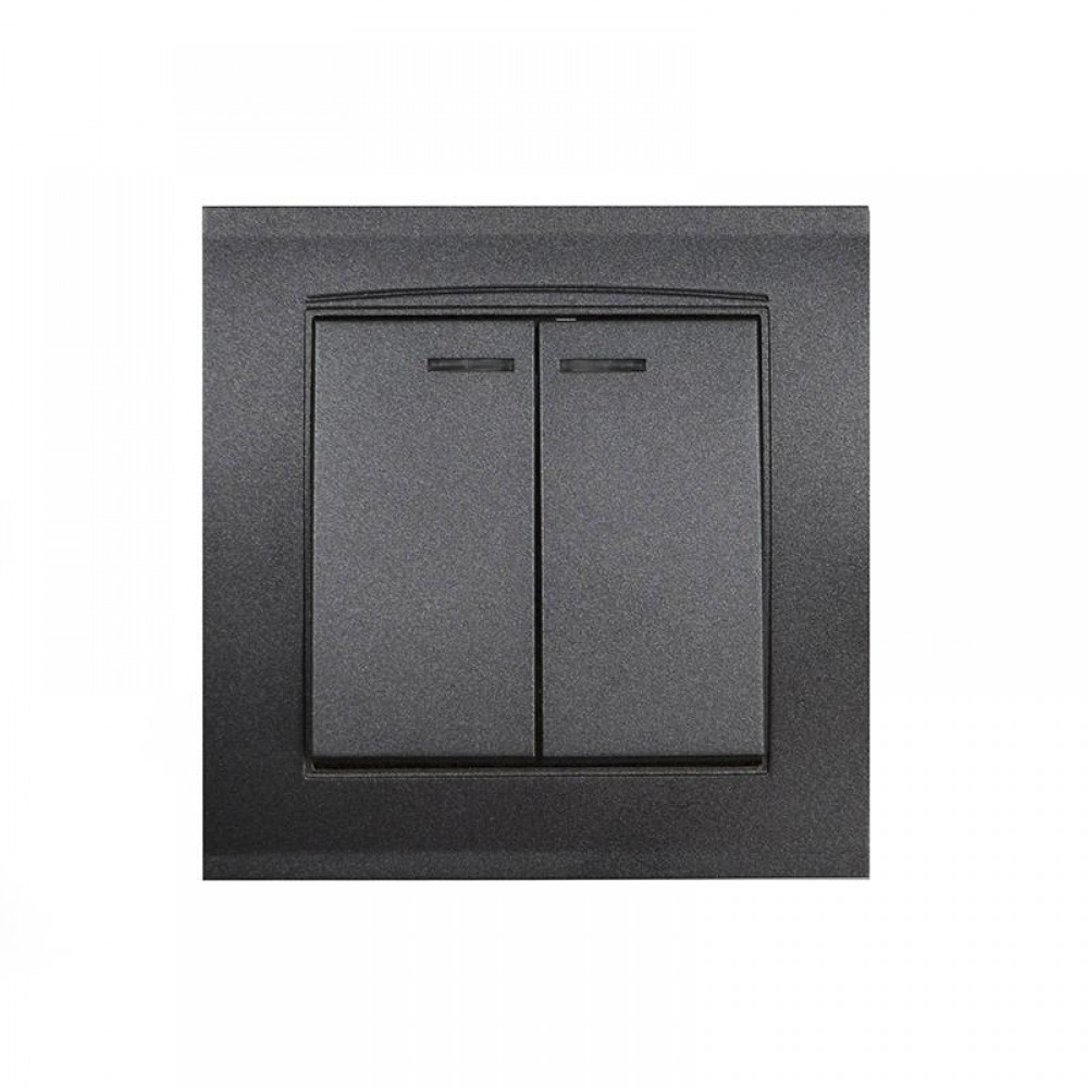 Выключатель 2-кл. СП Бриллиант 10А IP20 с подсветкой в сборе графит Universal 7947410-Gr