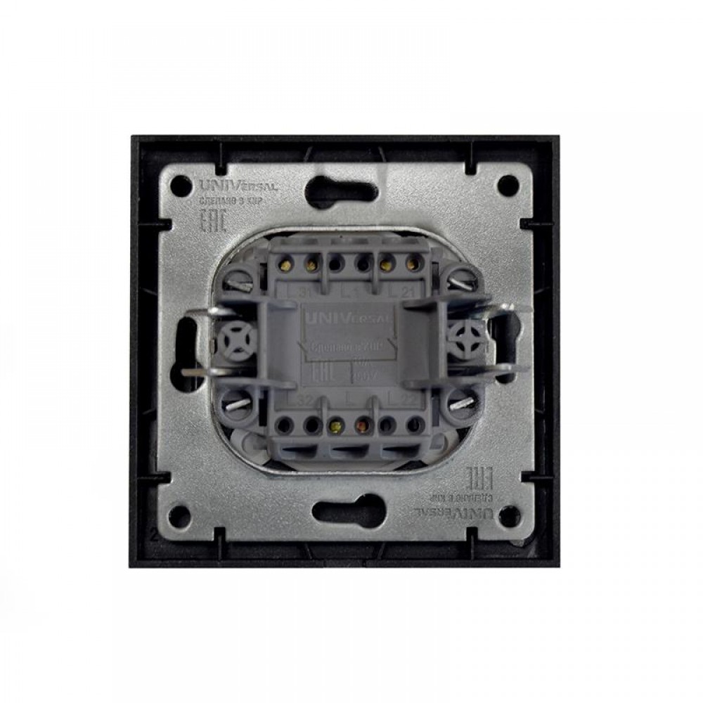 Технические характеристики Выключатель 2-кл. СП Бриллиант 10А IP20 с подсветкой в сборе графит Universal 7947410-Gr