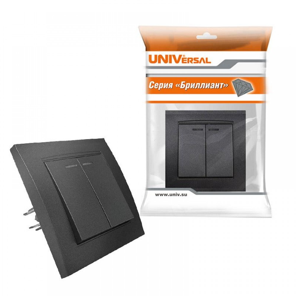 Выключатель 2-кл. СП Бриллиант 10А IP20 с подсветкой в сборе графит Universal 7947410-Gr 0 0 ₽