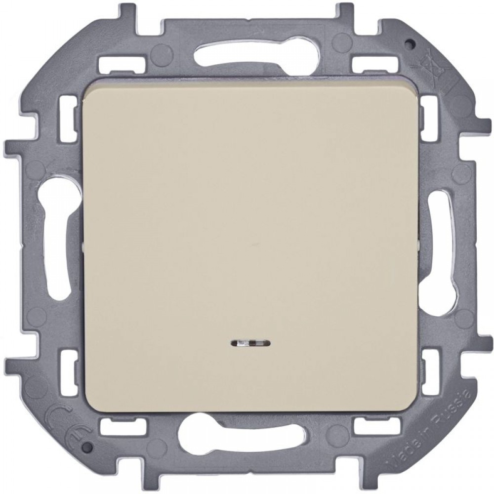 Выключатель одноклавишный с подсветкой/индикацией скрытого монтажа Inspiria, цвет "Слоновая кость", номинальный ток 10АХ, напряжение ~250В, безвинтовые зажимы. Устанавливается в жилых и общественных помещениях для управления приборами освещения, вентиляции и т.д.