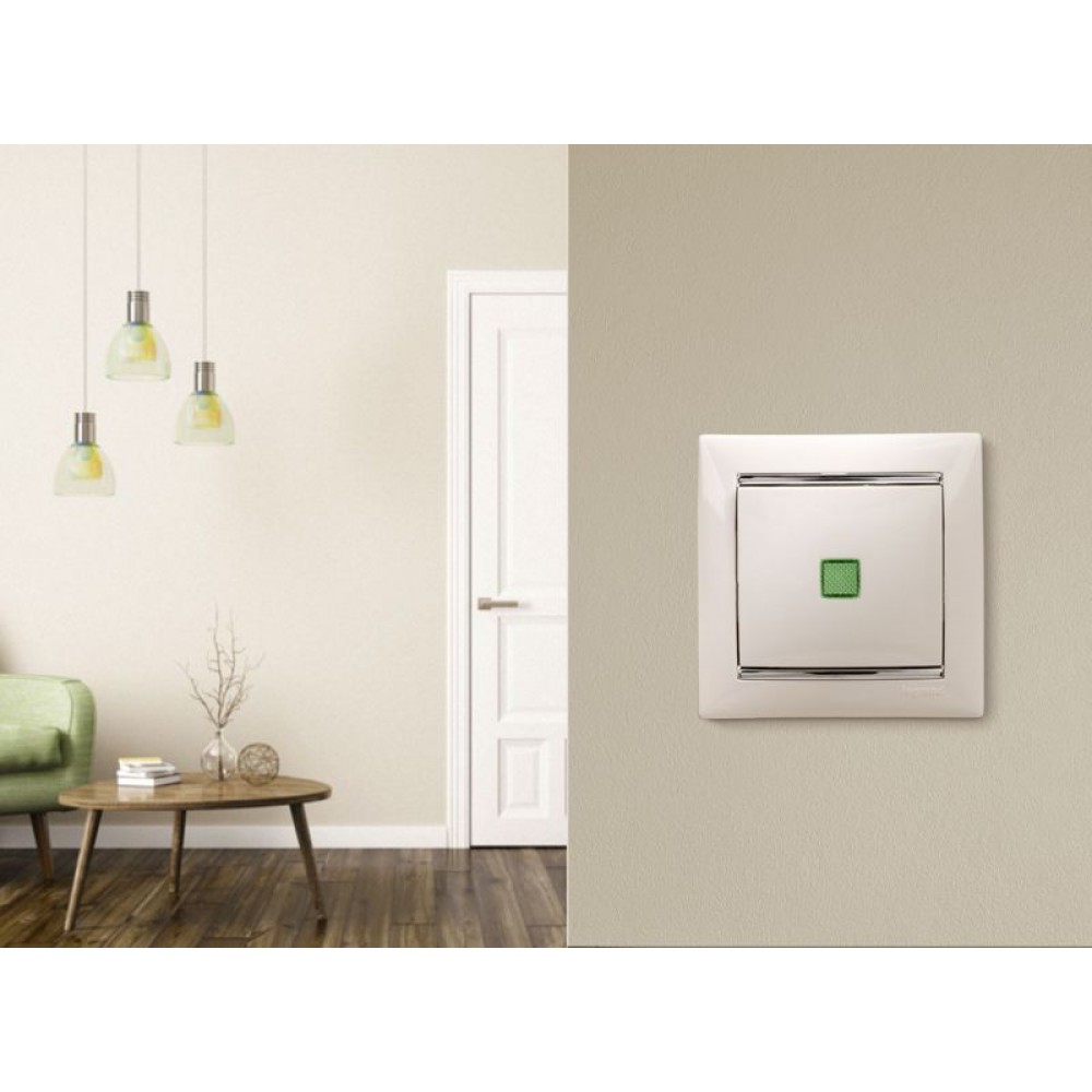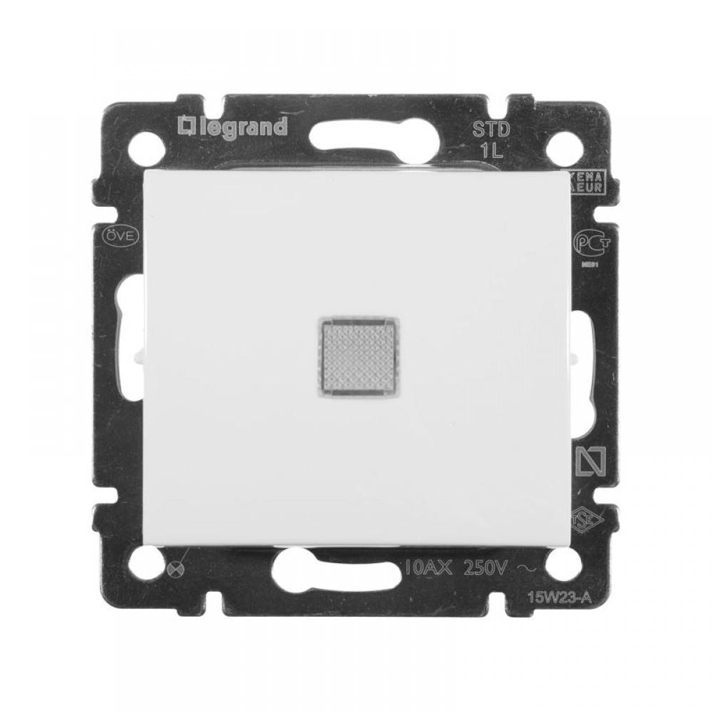 Выключатель одноклавишный с подсветкой VALENA для скрытого монтажа, номинальный ток 10 А, предназначен для установки в электрических сетях жилых и общественных зданий и используется для управления приборами освещения, вентиляции и т.д. Встроенная подсветка служит для упрощения поиска выключателя в темноте.