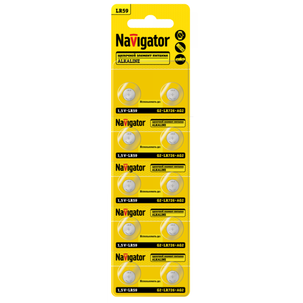 • Элемент питания алкалиновый "таблетка" 95 668 NBT-11 (LR59 AG2 LR726 BP10) (блист.10шт) Navigator 95668