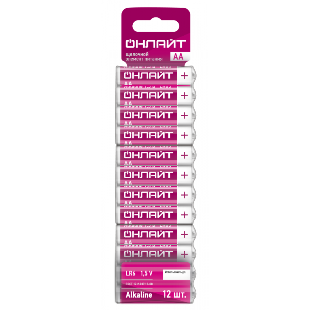 Технические характеристики Элемент питания алкалиновый 90 636 OBT-ALK-LR6-BP12 (блист.12шт) ОНЛАЙТ 90636