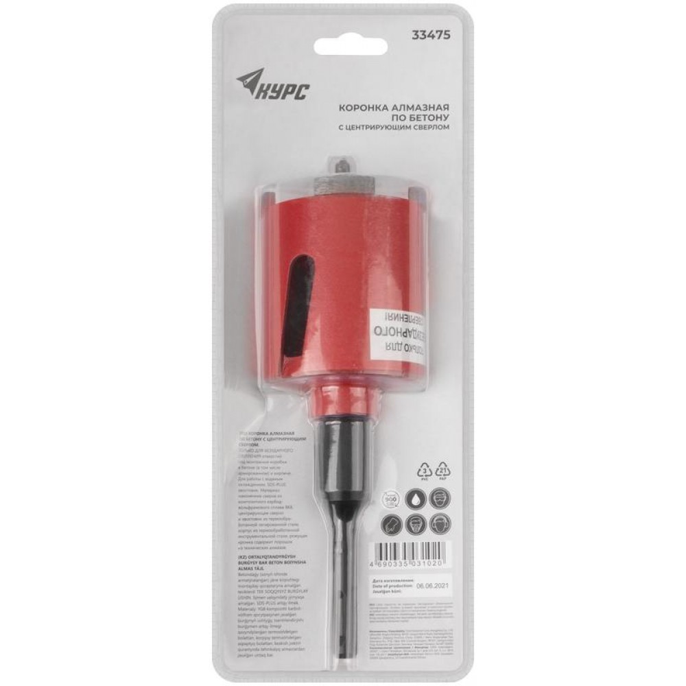 Технические характеристики Коронка кольцевая алмазная по бетону безударная 68мм в сборе КУРС 33475