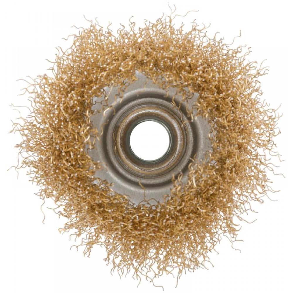 Корщетка-насадка для УШМ КУРС тип «чашка» предназначена для обработки дерева и металла, снятия краски. Форма «чашка» обеспечивает хорошую площадь прилегания к поверхности. Волнистая проволока обеспечивает деликатную зачистку поверхностей. Латунное покрытие проволоки предотвращает коррозию. Гайка с резьбой М14 обеспечивает прочную фиксацию на УШМ.