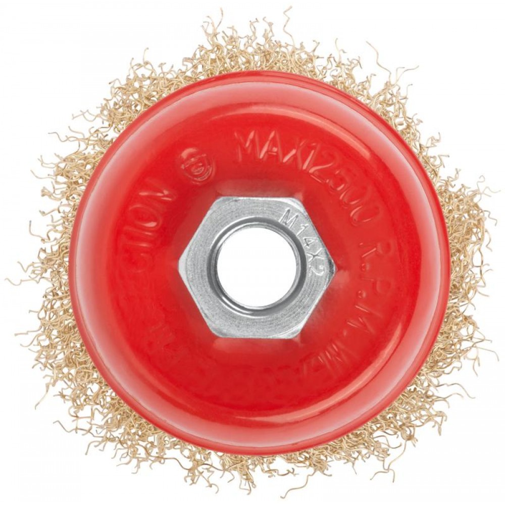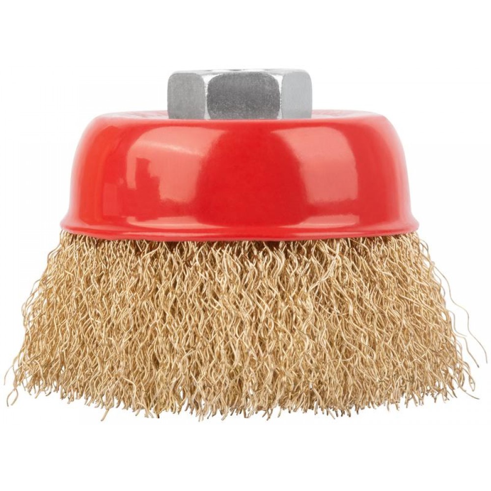 Корщетка чашечная гайка М14 стальная латунированная волнистая проволока 75мм КУРС 39037