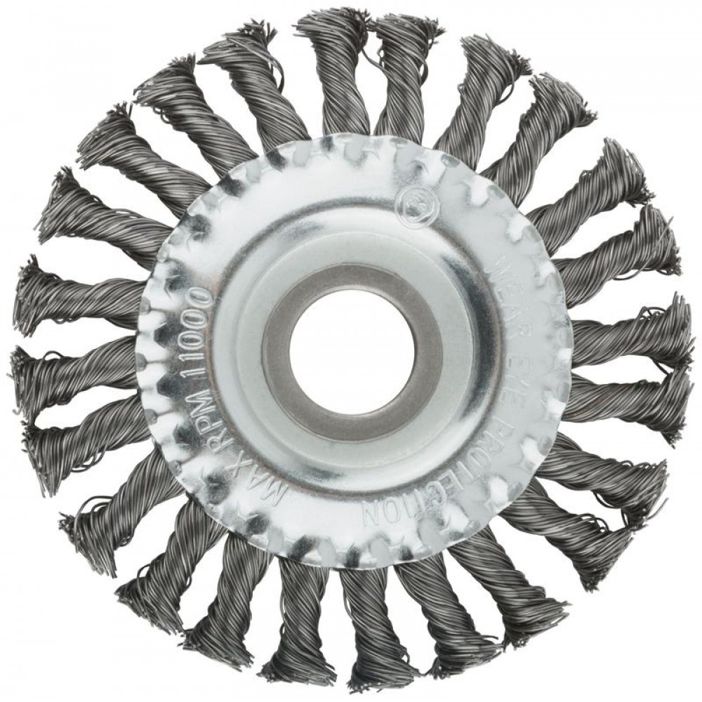 Технические характеристики Корщетка тип "колесо" посадочный диаметр 22.2мм стальная витая проволока 125мм MOS 38930М