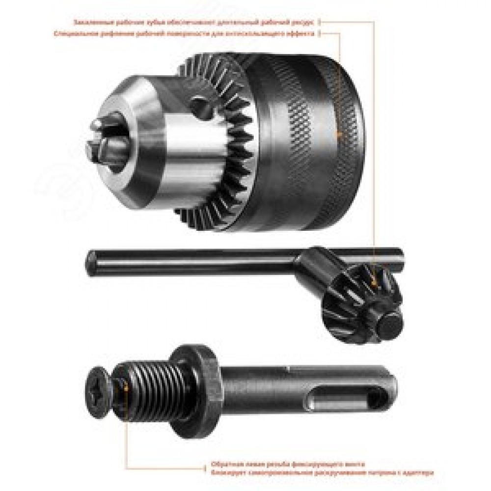 Технические характеристики Набор ''Мастер'': Патрон ключевой 13 мм, ''SDS+'' адаптер, ключ для патрона, посадочная резьба 1/2'', Д 2,0-13мм