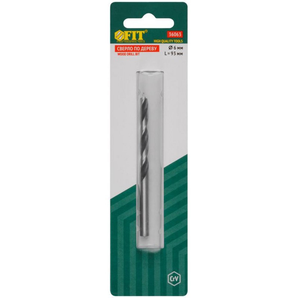 Технические характеристики Сверло по дереву CrV Профи 6мм FIT 36063