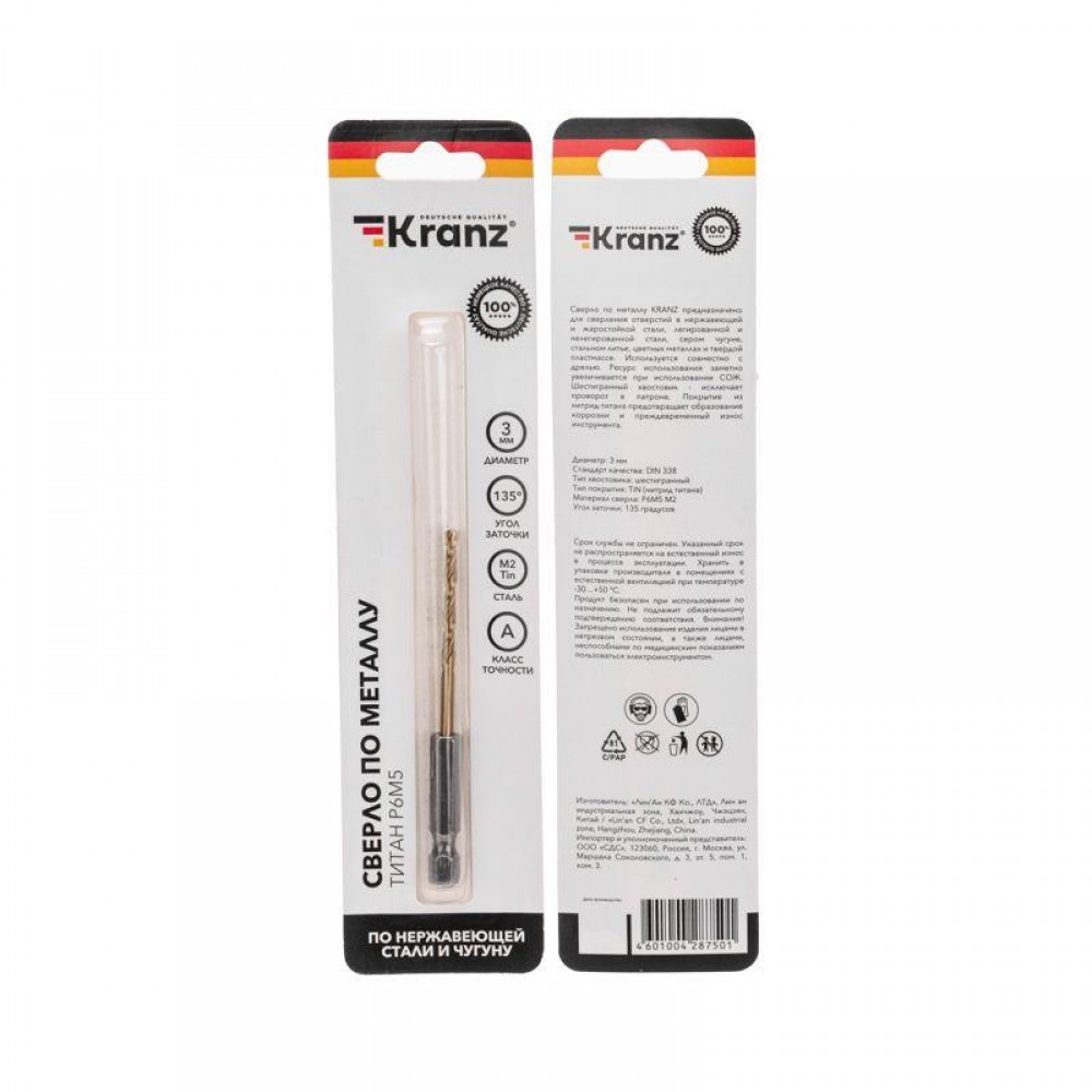 Сверло по металлу 3мм Р6М5 ТИТАН шестигранный хвостовик DIN 338 Kranz KR-91-5502 0 95 ₽