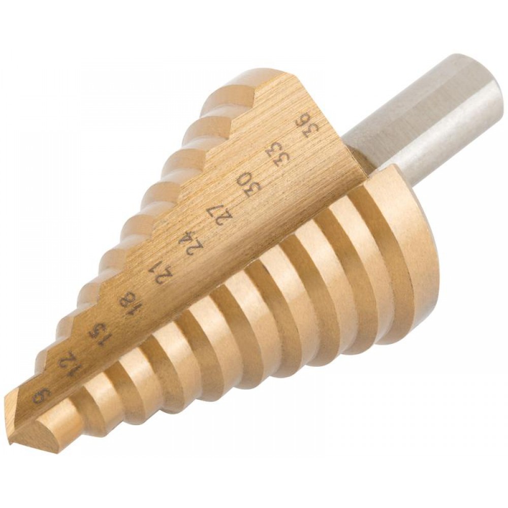 Сверло ступенчатое HSS по металлу 12 ступеней 6-9-13-16-19-21-23-26-29-32-35-38мм MOS 36386М
