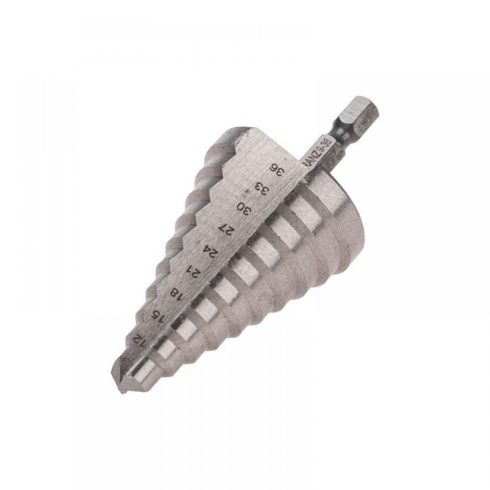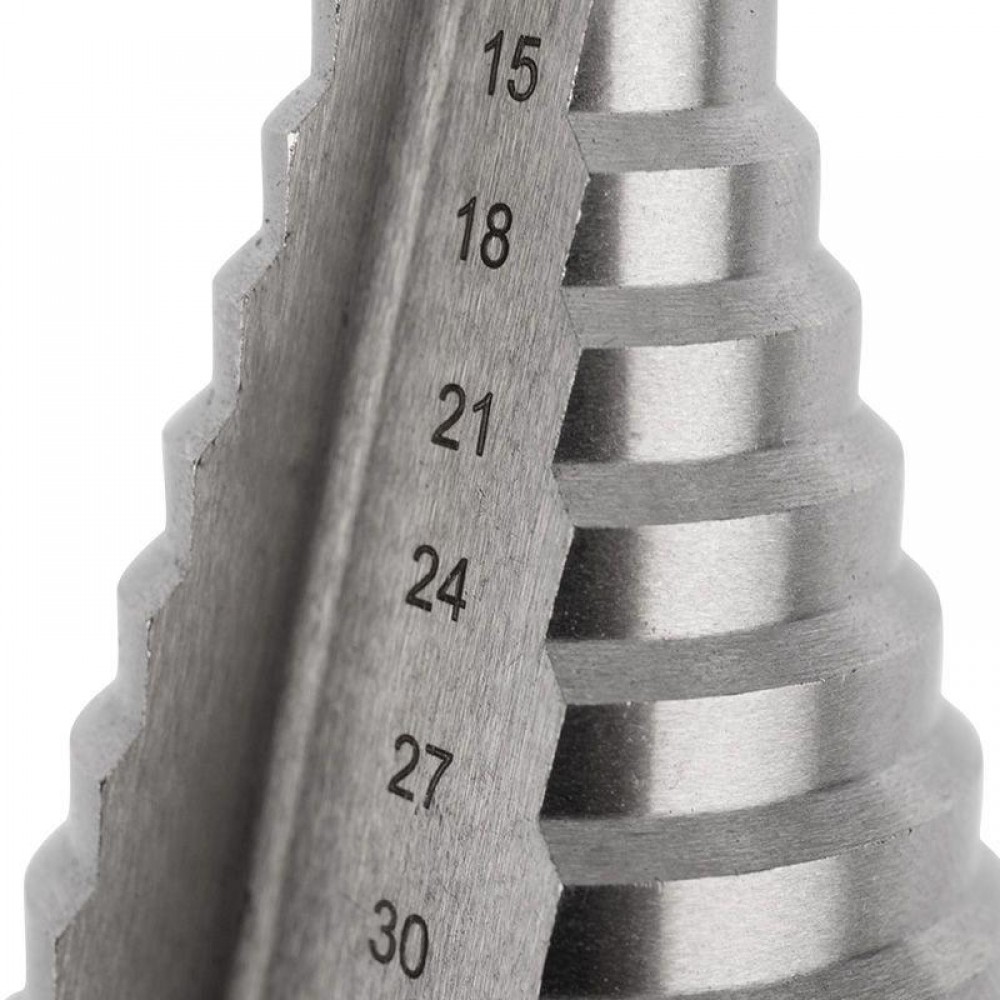 На каждой из 10 ступеней сверла нанесена маркировка фактического диаметра. Диапазон ступеней: 9, 12, 15, 18, 21, 24, 27, 30, 33, 36 (шаг 3 мм).