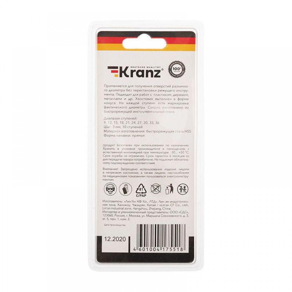 Ступенчатое сверло KRANZ применяется при выполнении монтажно-сборочных работ для сверления отверстий различных диаметров без перестановки режущего инструмента. Применяется в работе с такими материалами, как пластик, дерево, металл и др.