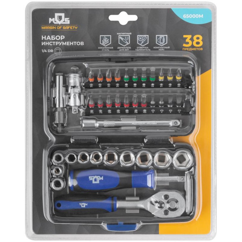 Мини-набор инструмента (биты; головки; вороток; удлинитель) 38шт пластиковый кейс MOS 65000М 0 3146 ₽