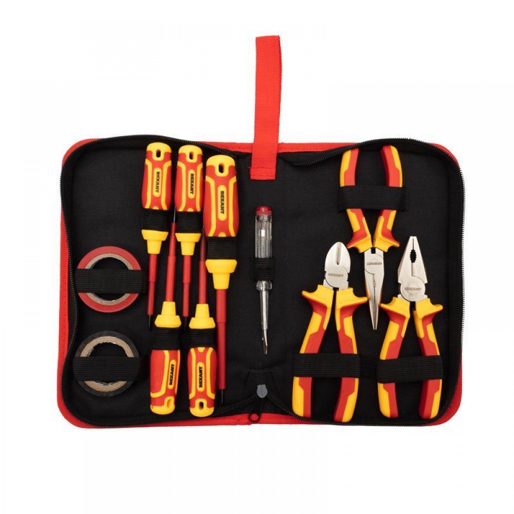 Набор диэлектрического инструмента REXANT RI-02, состоящий из 11 предметов, предназначен для широкого спектра слесарных и монтажных работ. Используется для перекусывания проводов и проволоки, удаления изоляции с проводов, выполнения сборочных, разборочных работ, монтажа и демонтажа резьбовых соединений: шурупов, саморезов и т. д. Отлично подходит для работы с оборудованием напряжением до 1000 В.