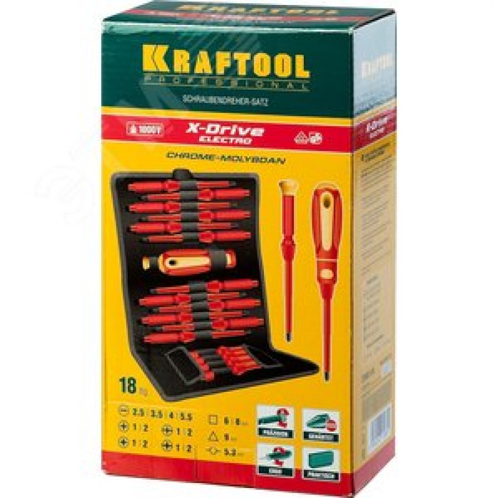 Технические характеристики Набор ''Х-Drive ELECTRO'': Высоковольтные отвертки, сменные стержни, ключи специальные, до 1000В, 18 предм,