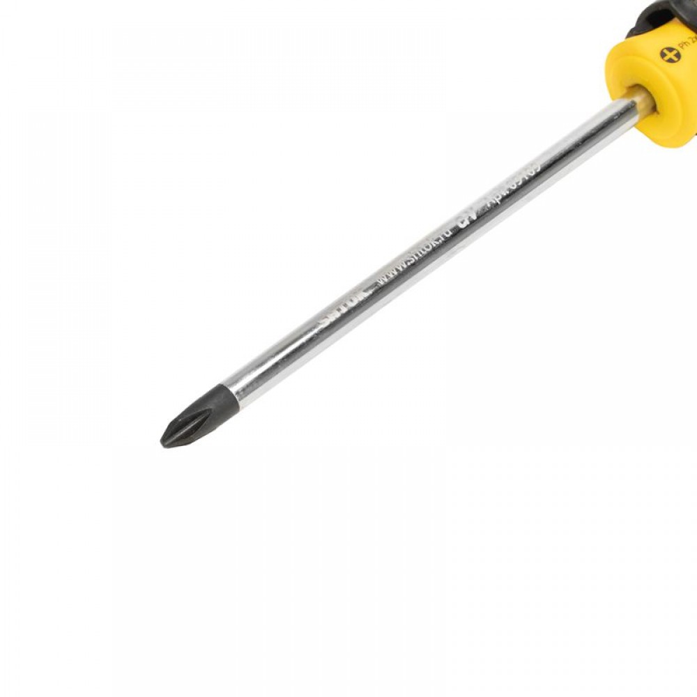 Крестовая отвертка SHTOK Ph2x125 мм 09109 используется для откручивания или закручивания крепежных элементов с рабочим профилем Phillips. Возможно использование рабочей части отвертки в качестве рычага без опасности излома. Магнитный наконечник обеспечивает удобство монтажа в приборах, расположенных вертикально. Удобная рукоятка со вставками из термопластичного эластомера обеспечивает надежный хват и точность работы.