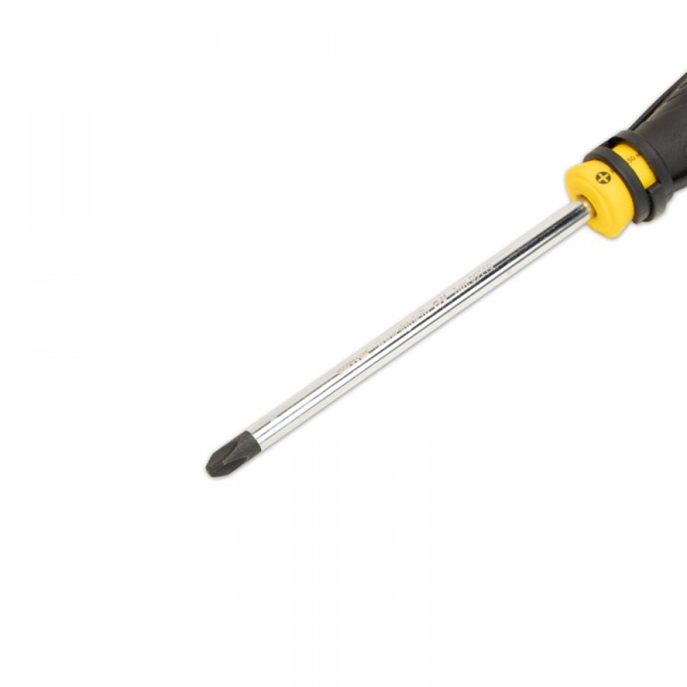 Крестовая отвертка SHTOK Ph3x150 мм 09110 оснащена двухкомпонентной рукояткой, предотвращающей соскальзывание руки во время работы и образование мозолей. Прочная рабочая часть выполнена из термообработанной стали. Рабочая часть оснащена магнитным наконечником, обеспечивающим удобство монтажа в приборах, расположенных вертикально.