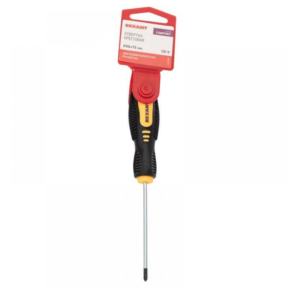 Технические характеристики Отвертка крестовая PH 0х75мм двухкомпонентн. рукоятка Rexant 12-4726