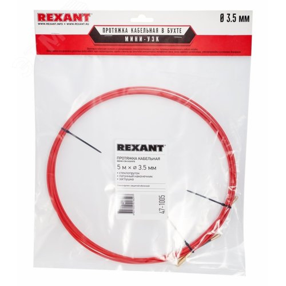 Технические характеристики Протяжка кабельная (мини УЗК в бухте), стеклопруток, d=3.5 мм 5 м красная