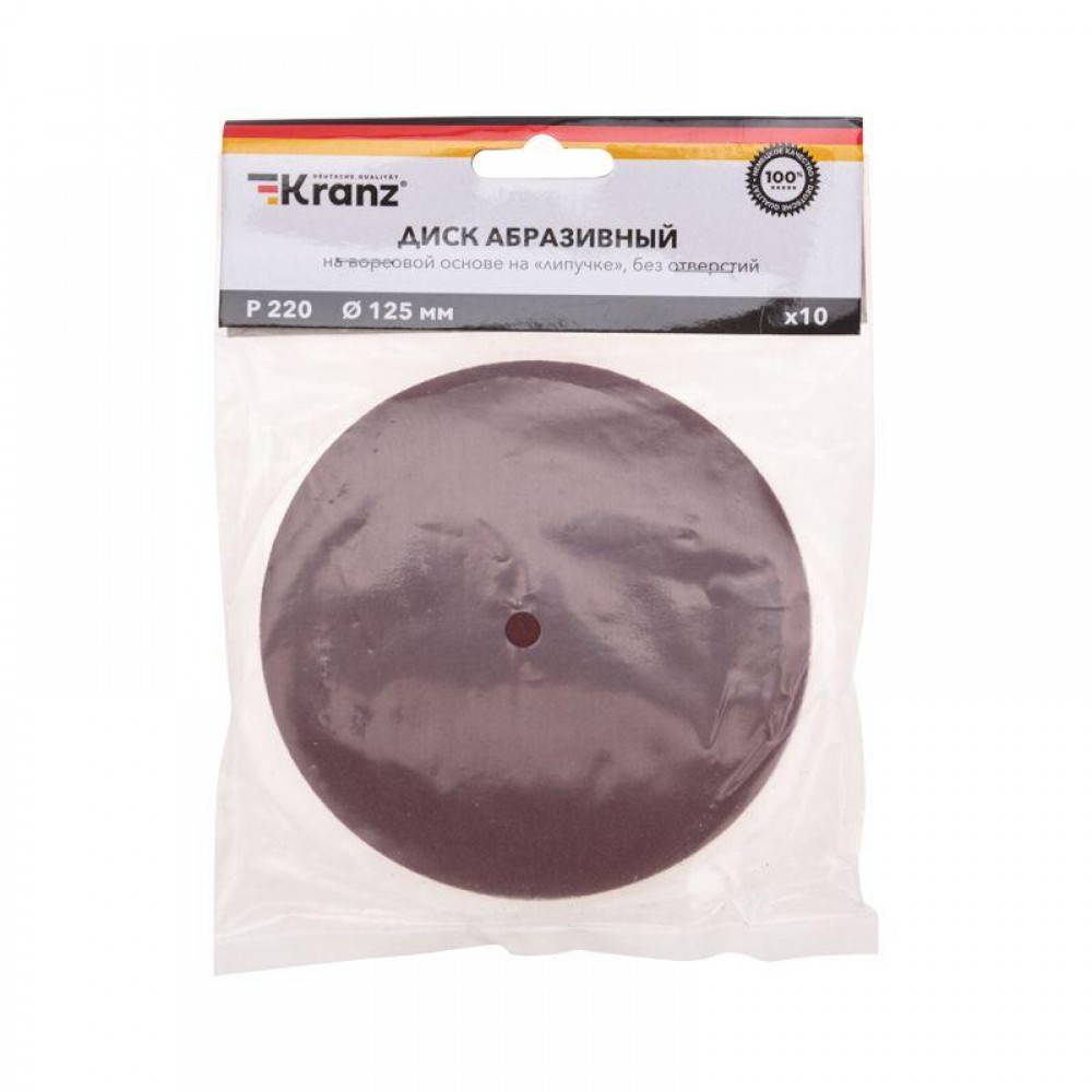 Технические характеристики Диск абразивный на ворсовой основе на липучке без отверст. P220 125мм (уп.10шт) Kranz KR-91-1154