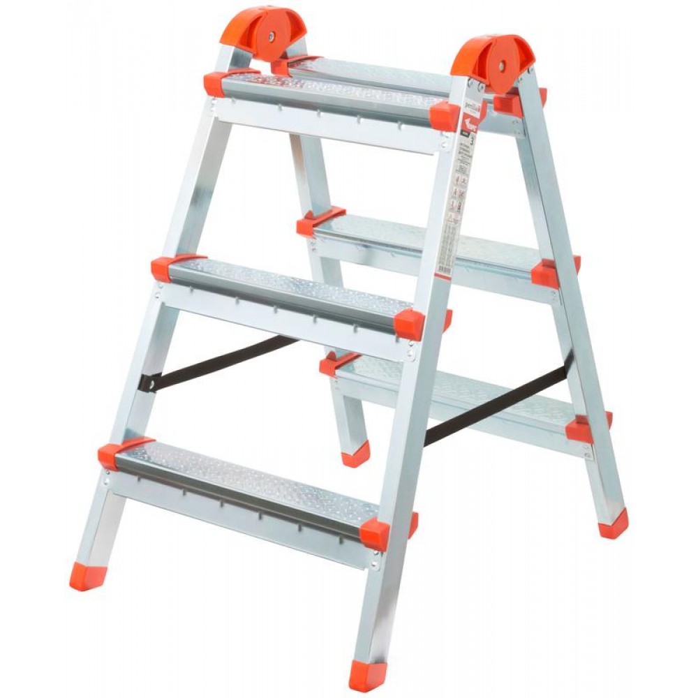 Лестница-стремянка двусторонняя 3 ступ. Н=67.5см 4.0кг стальная КУРС 65392