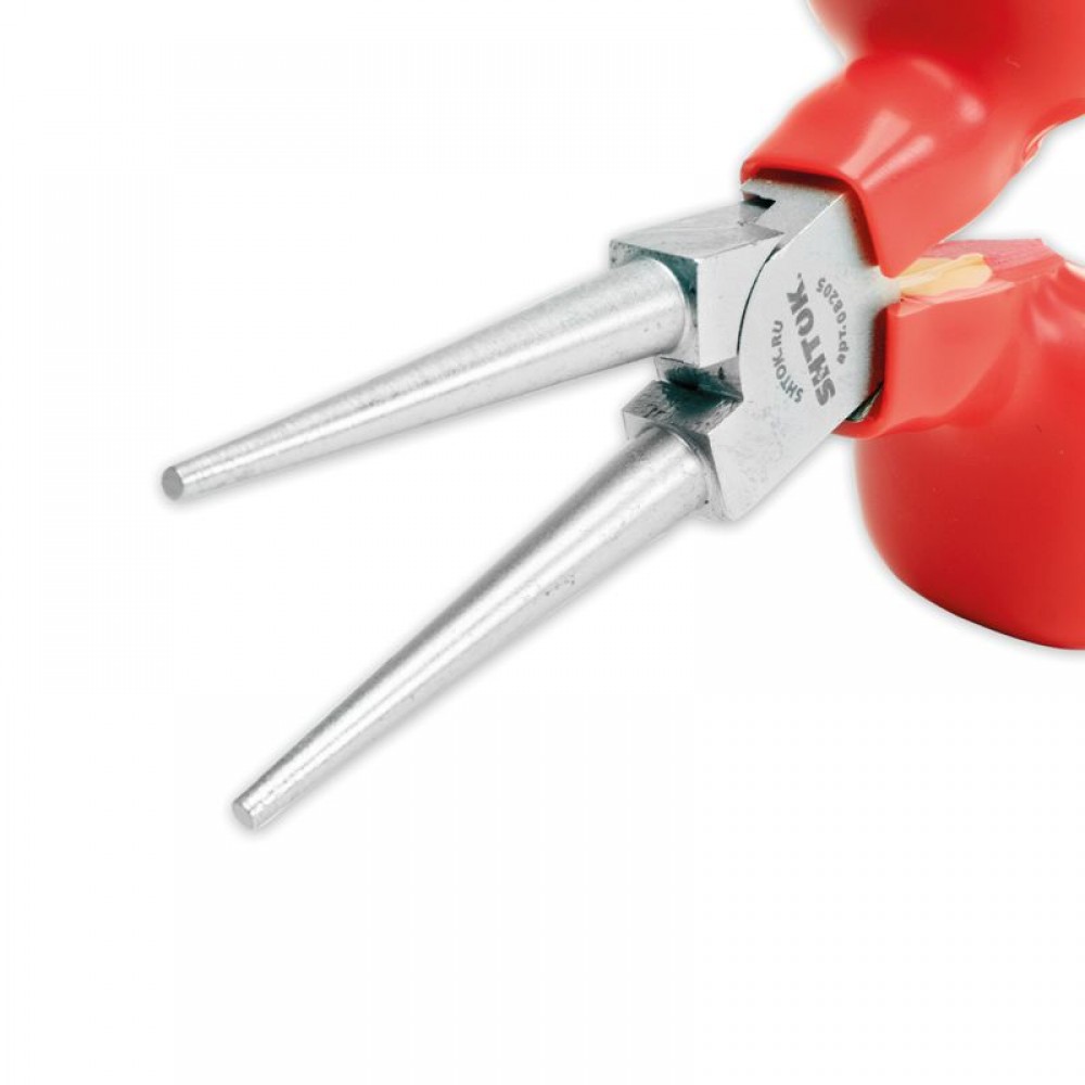 Рукоятки из двухслойного пластизоля обеспечивают надежность удержания диэлектрических круглогубцев SHTOK 1000В 160 мм 08205 во время работы.