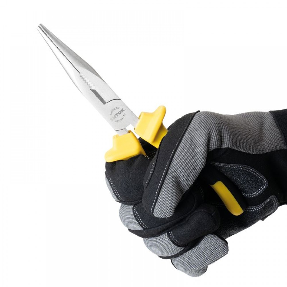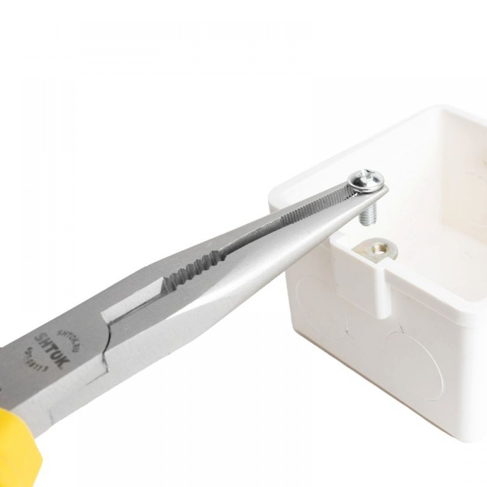 Диэлектрические тонкогубцы SHTOK 8113 представляют собой прочный и удобный для использования в труднодоступных местах шарнирно-губцевый инструмент. Тонкогубцы применяются для сгибания и разгибания пластин, проволоки, прутков. Тонкие и длинные кончики позволяют выполнять более точную работу и захватывать мелкие детали. Длина инструмента - 210 см. Хромованадиевые губки имеют никелированное покрытие, которое служит для защиты от коррозии. Двухкомпонентный материал обеспечивает комфортное применение, так как тонкогубцы не скользят в руке. Насечки на губках инструмента защищают от выскальзывания предметов из зажима.