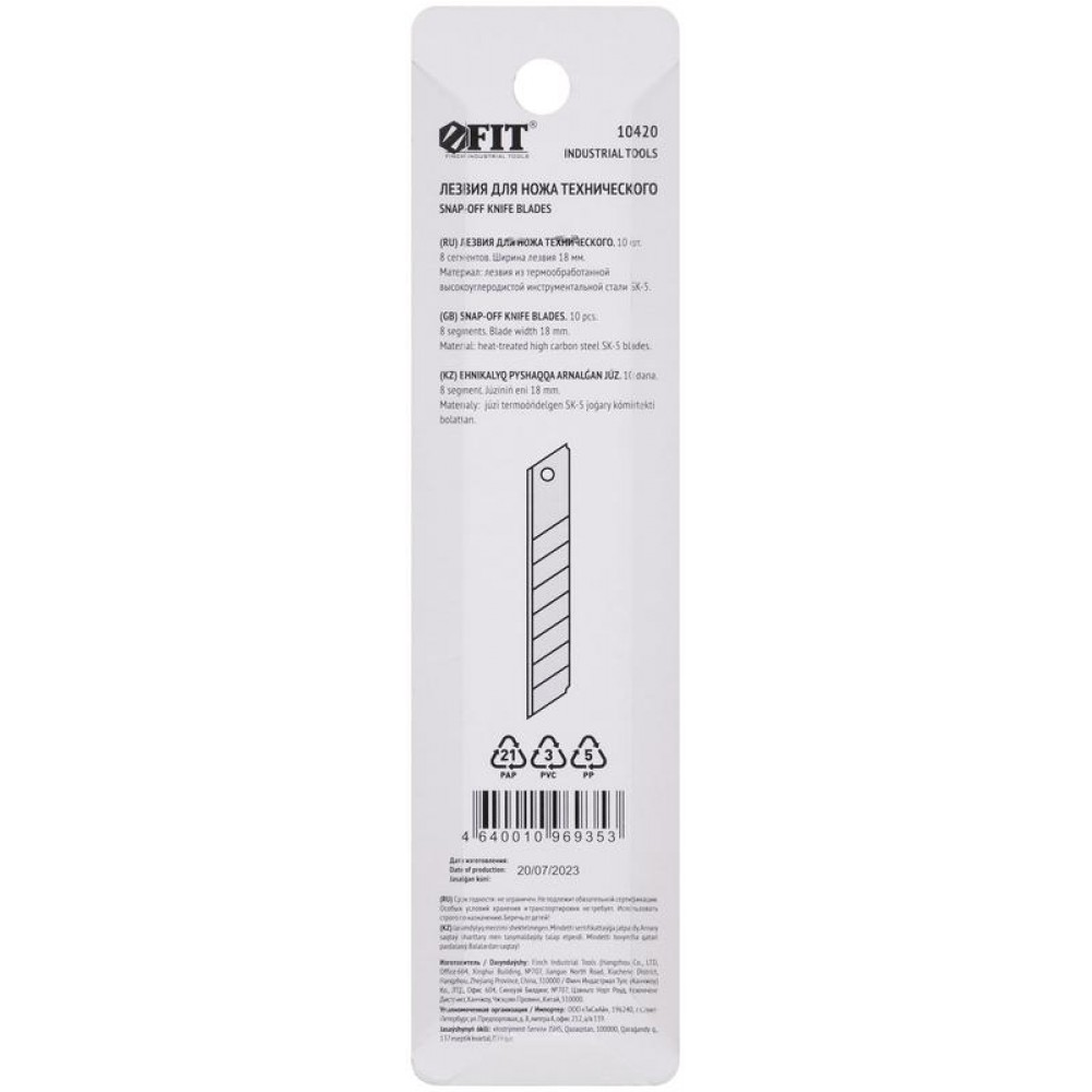 Технические характеристики Набор лезвий для ножа технического 18мм 8 сегментов сталь SK5 (уп.10шт) FIT 10420