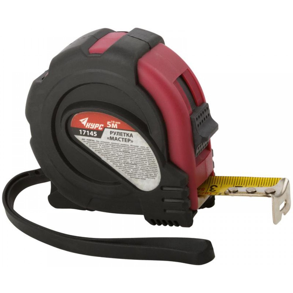 Рулетка Мастер 5мх19мм прорезиненный корпус КУРС 17145