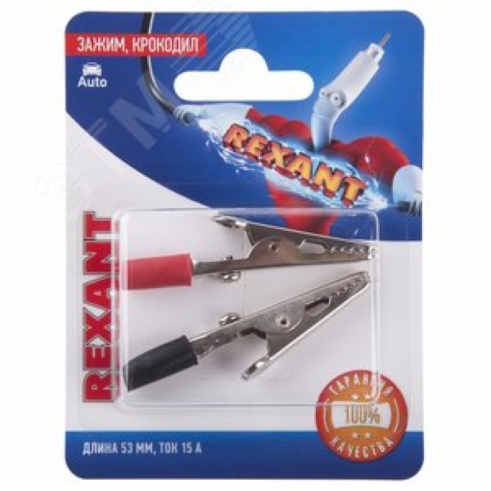 Технические характеристики Зажим крокодил, длина 53 мм, ток 15A, 2 шт.,