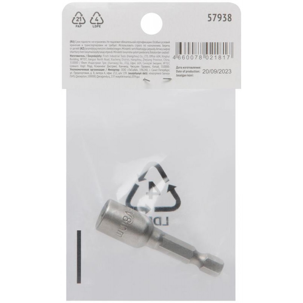 Технические характеристики Насадка для шурупов и болтов с 6-гр.головкой Профи d8мм L48мм FIT 57938