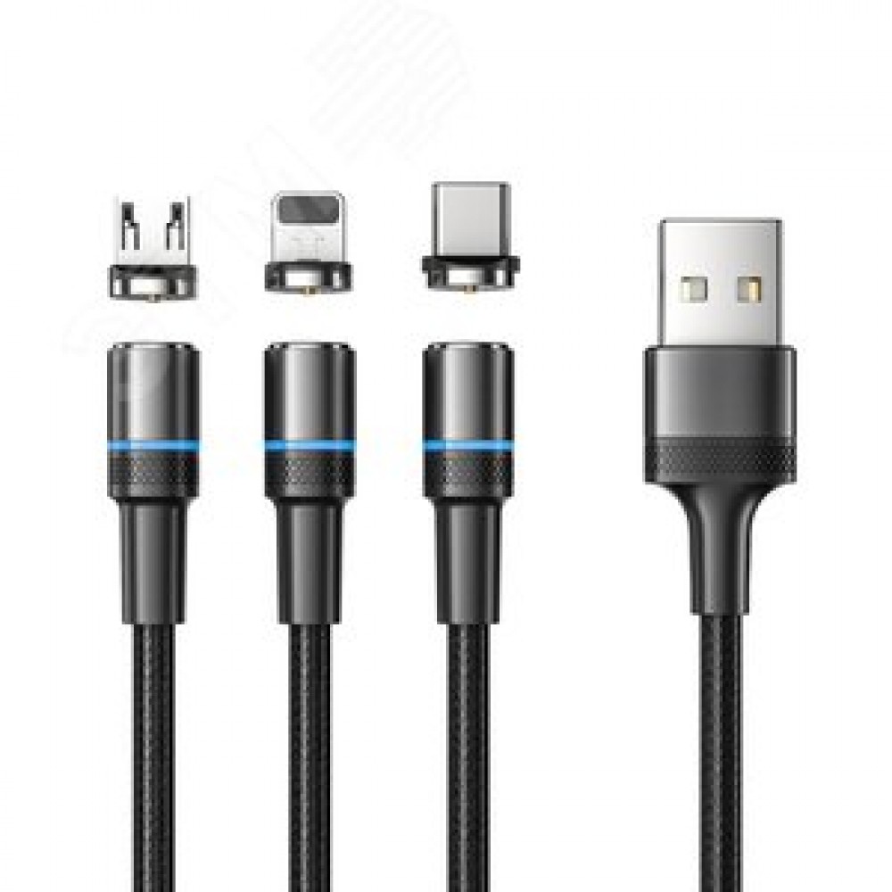 Технические характеристики Кабель USB 3в1, Type-С, Lightning, Micro USB, 1.2м, черный