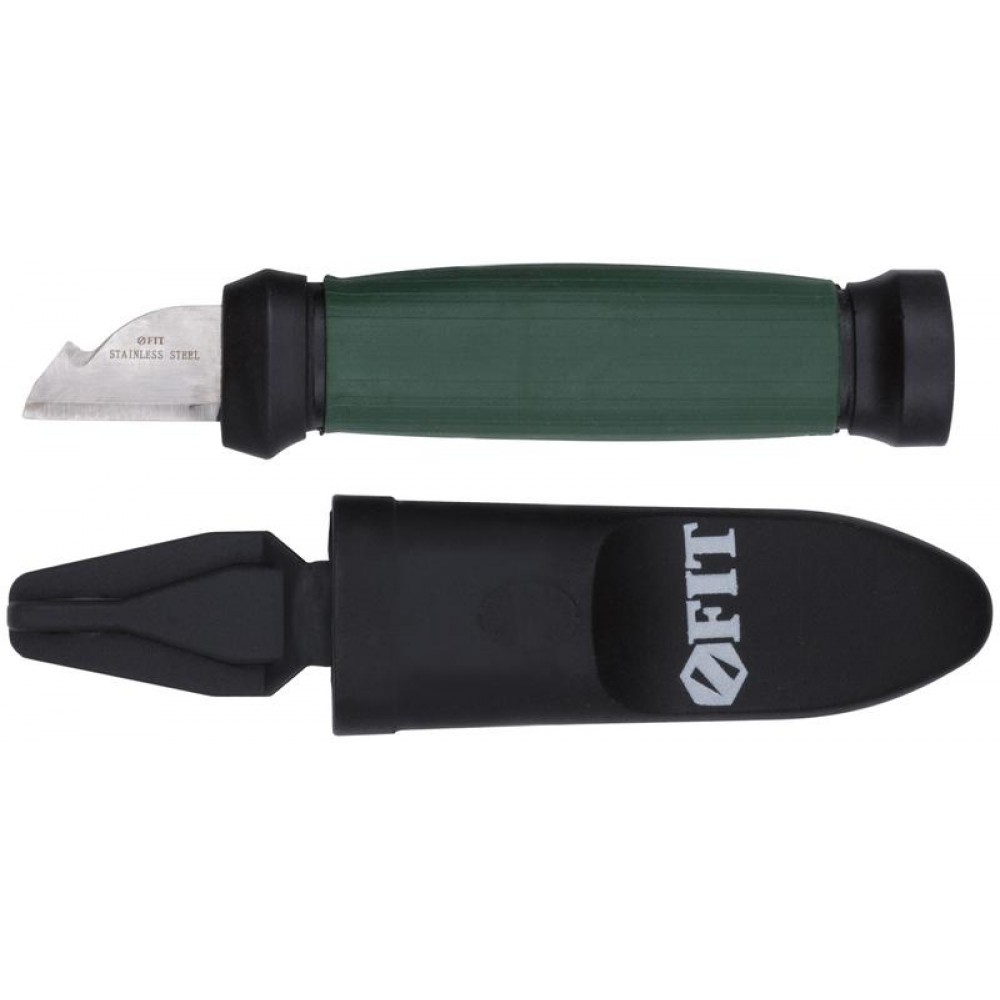 Нож электрика FIT IT предназначен для снятия изоляции с проводов и прочих электромонтажных работ. Лезвие с изогнутой обратной частью с двухсторонней заточкой выполнено из качественной нержавеющей стали. Двухкомпонентная эргономичная рукоятка надежно лежит в руке. Пластиковые ножны обеспечивают безопасную транспортировку инструмента.