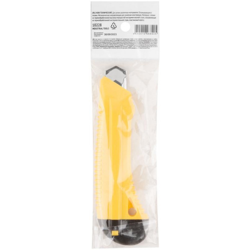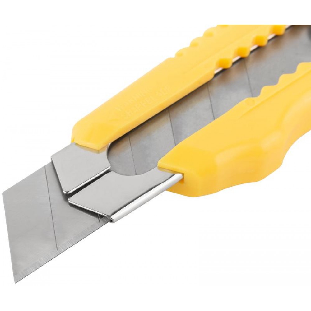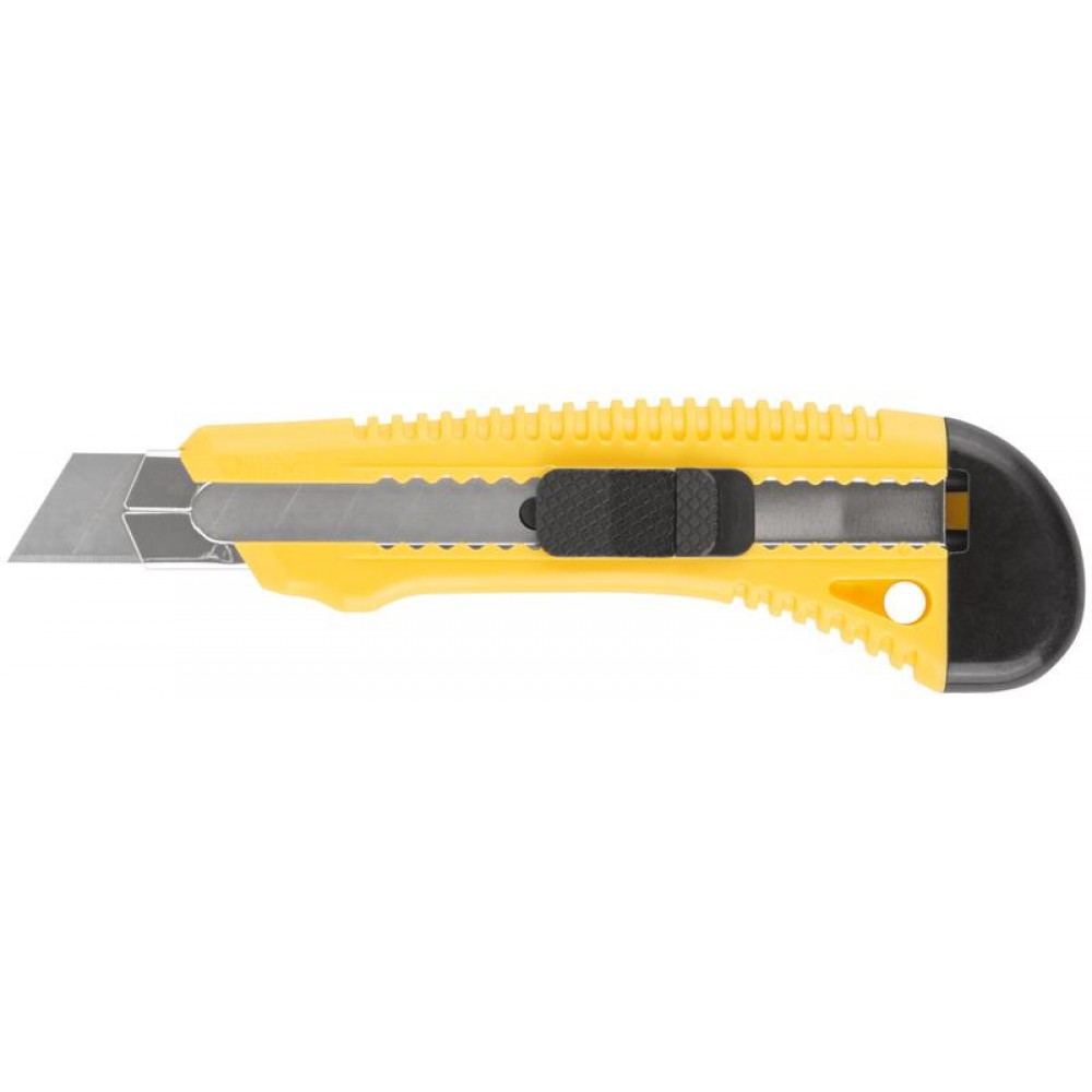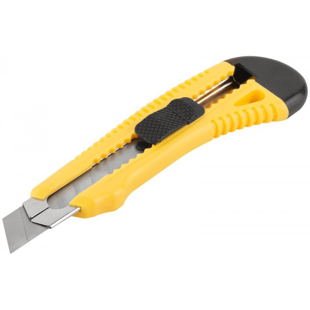 Применяется для резки бумаги, обоев,скотча, картона средней твердости.Острое лезвие с большим ресурсом выполнено из инструментальной стали. Рифленая форма ножа обеспечивает крепкий захват и предотвращает выскальзывание при использовании. Компактный корпус изготовлен из пластика, удобен в использовании и занимает минимальное место.