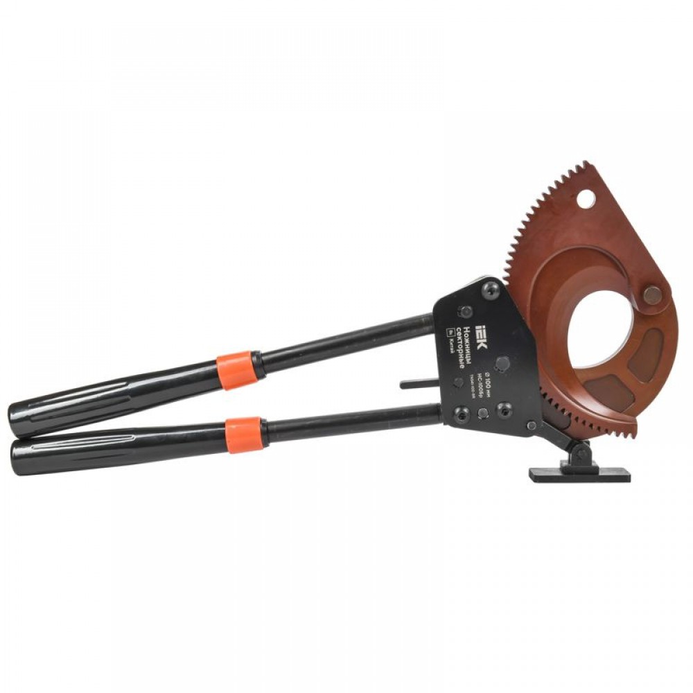 Ножницы секторные НС-100Бр IEK для резки медного и алюминиевого бронированного кабеля с максимальным диаметром до 100мм (3х300мм2). Телескопические ручки. Подходит для: диаметр перерезаемого кабеля 100 мм; сечение перерезаемого Аl/Cu кабеля 3х300мм2.