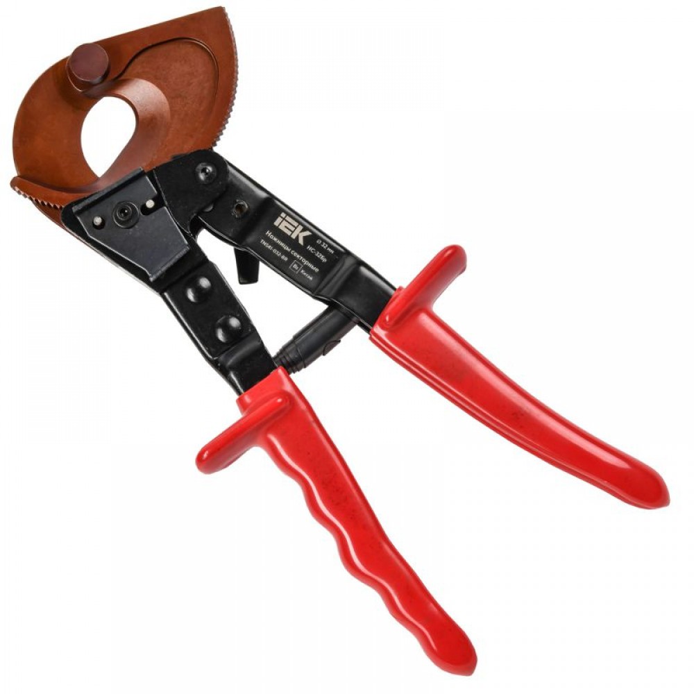 Ножницы секторные НС-32Бр IEK для резки медного и алюминиевого кабеля с ленточным бронированием максимальным диаметром до 32мм (300мм2). Подходит для: диаметр перерезаемого кабеля-32 мм; сечения перерезаемого Cu кабеля -4х50мм2; сечения перерезаемого Al кабеля -4х70 мм2.