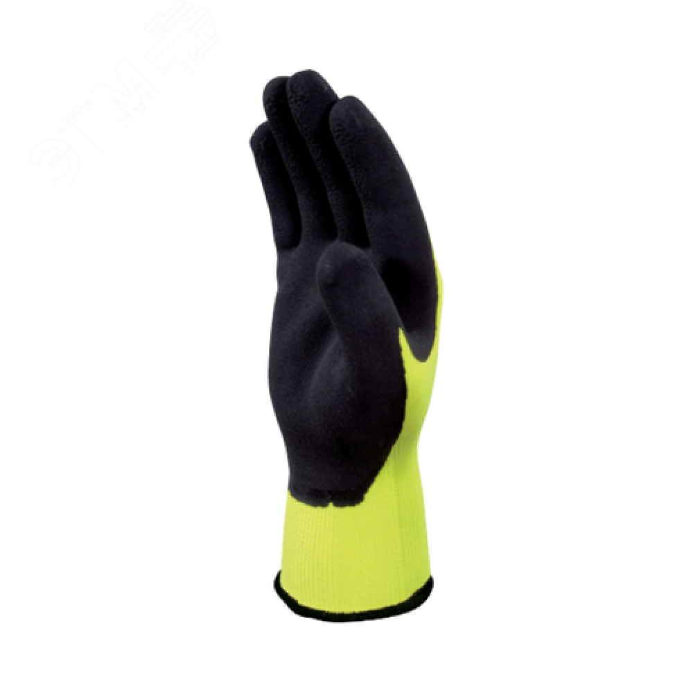 Технические характеристики Перчатки полиэстеровые с латексным покрытием VV733 цвет Лимонный/черный размер 10