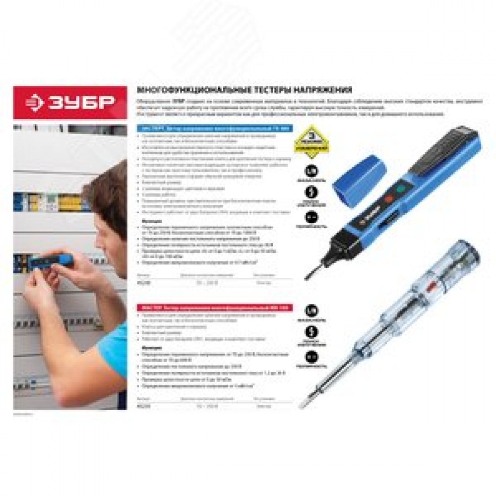 Технические характеристики Тестер напряжения ''Мастер'' многофункциональный, 1,2-250В