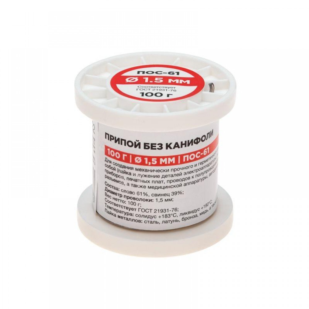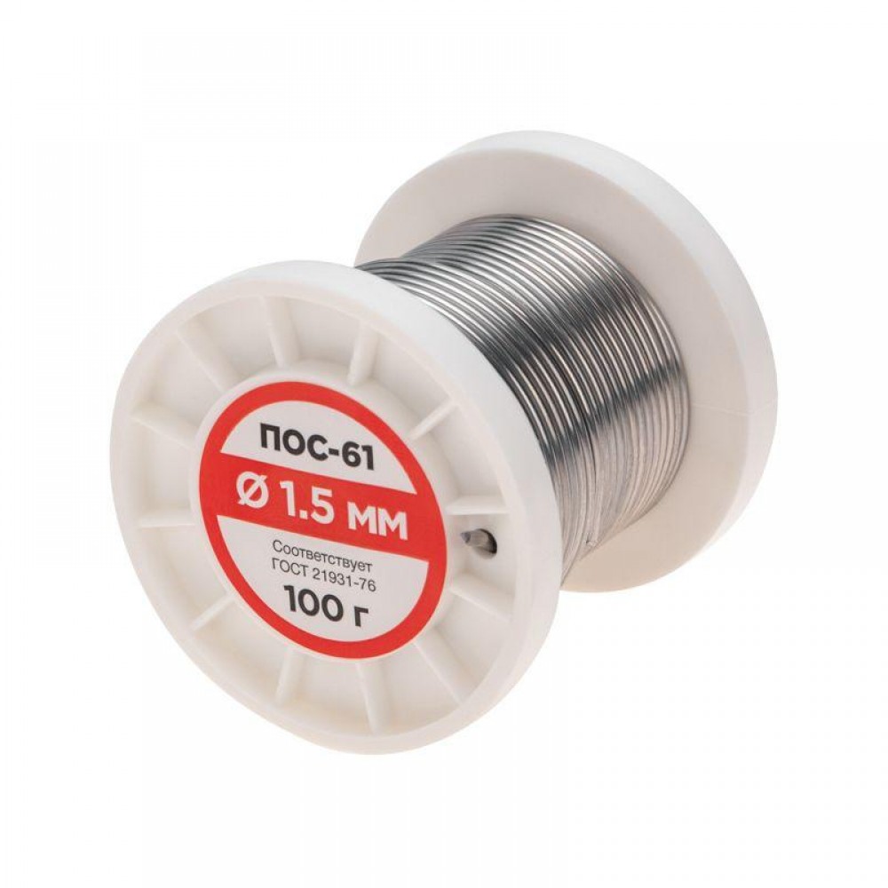 • Припой катушка ПОС-61 без канифоли (d1.5мм 100гр) Rexant 09-3122