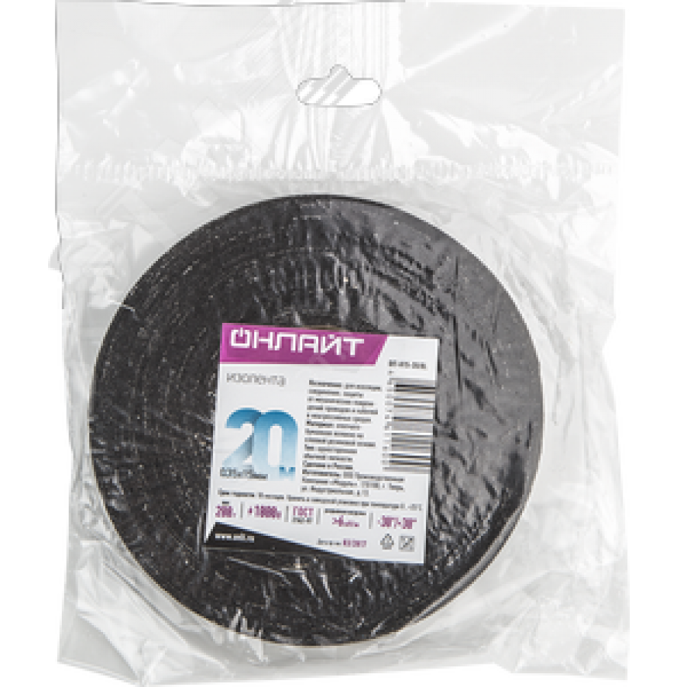 Технические характеристики Изолента ОНЛАЙТ 61 160 OIT-H15-20/BL ХБ черная 200г 0,35х15мм 20м