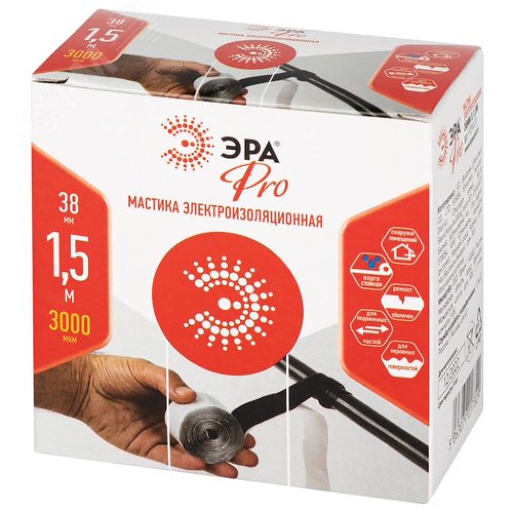 Технические характеристики Изолента PRO PROMAS38 Мастика электроизоляционная, 38мм х 1,5м, 3мм черная