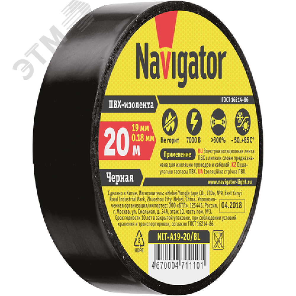 • Изолента ПВХ черная 19мм 20м Navigator NIT-A19-20/BL
