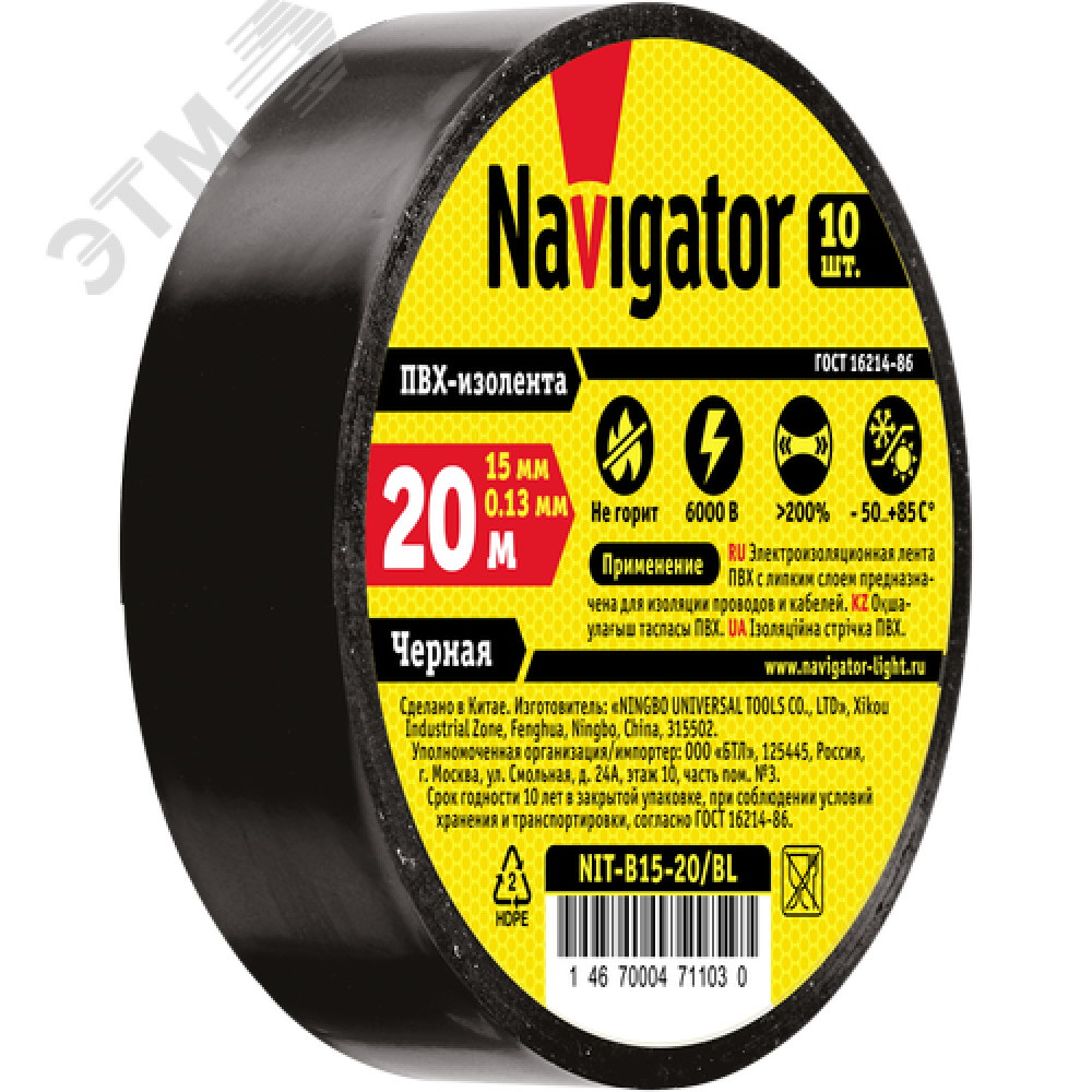 • Изолента ПВХ черный 15мм 20м