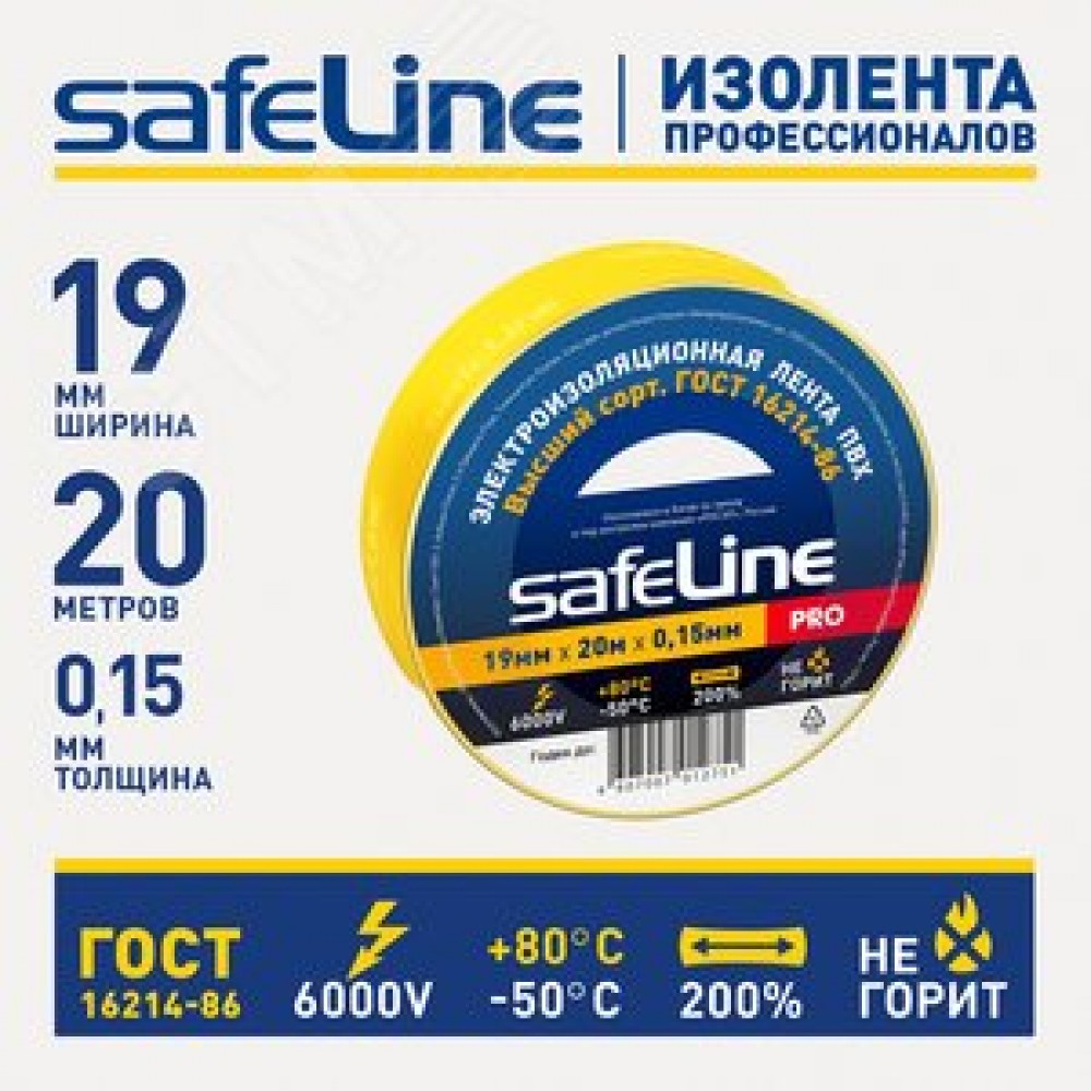 Технические характеристики Изолента ПВХ желтая 19мм 20м