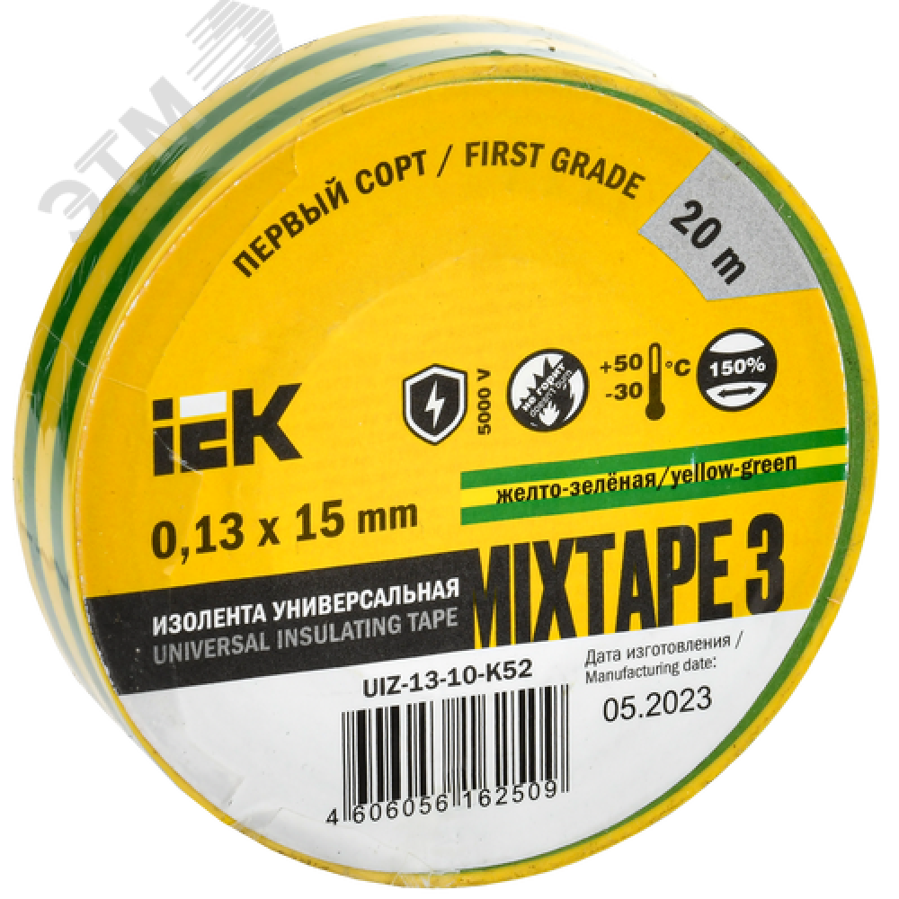 Технические характеристики Изолента ПВХ желто-зеленая 15мм 20м
