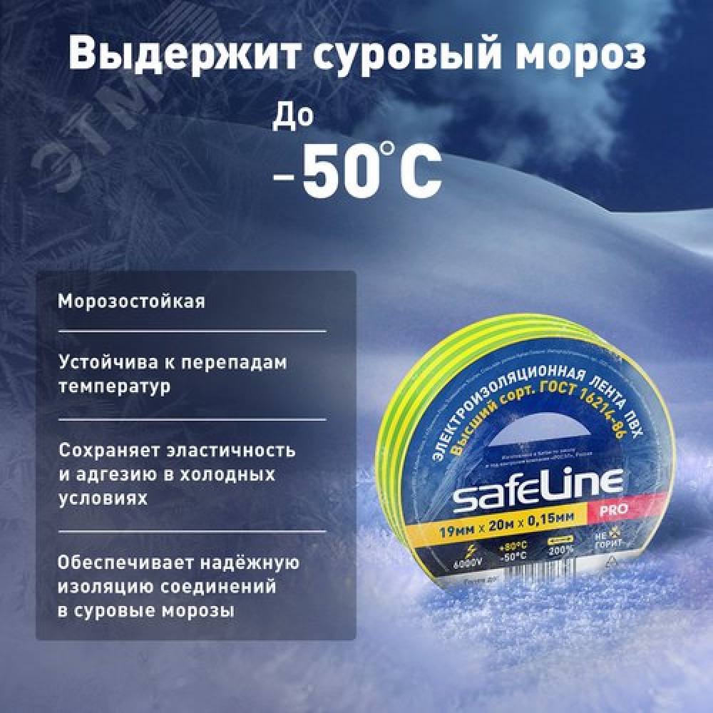 Технические характеристики Изолента ПВХ желто-зеленая 19мм 20м Safeline