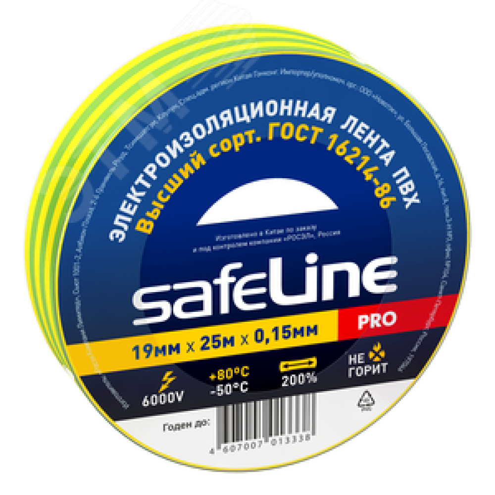 Технические характеристики Изолента ПВХ желто-зеленая 19мм 25м