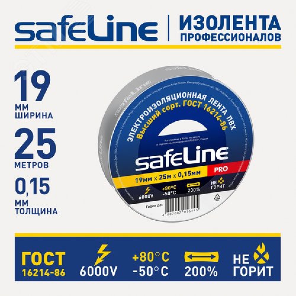 • Изолента Safeline 19/25 серо-стальной