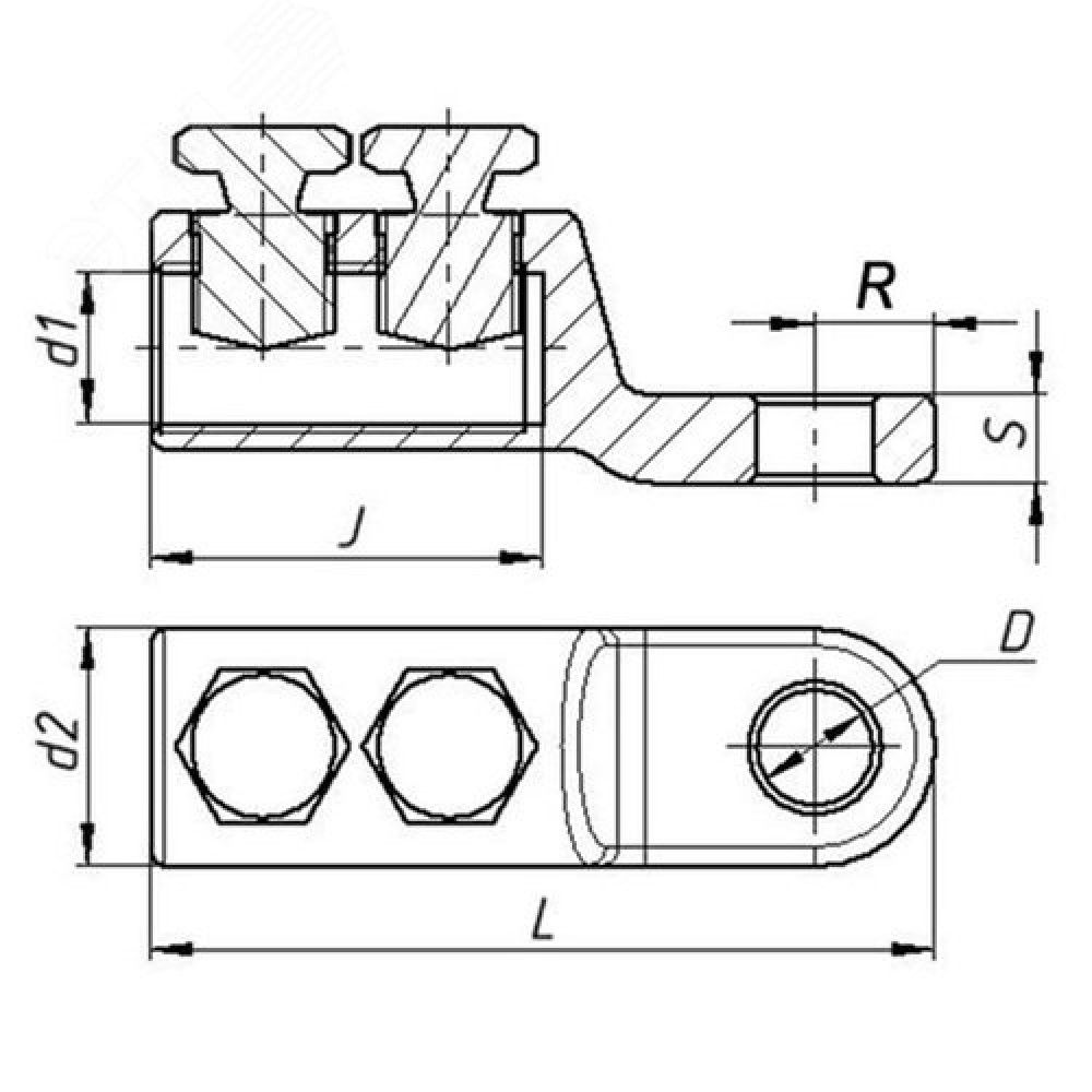 Технические характеристики Наконечник болтовой 2НБ-2-002 (70-120) со срывнымиболтами